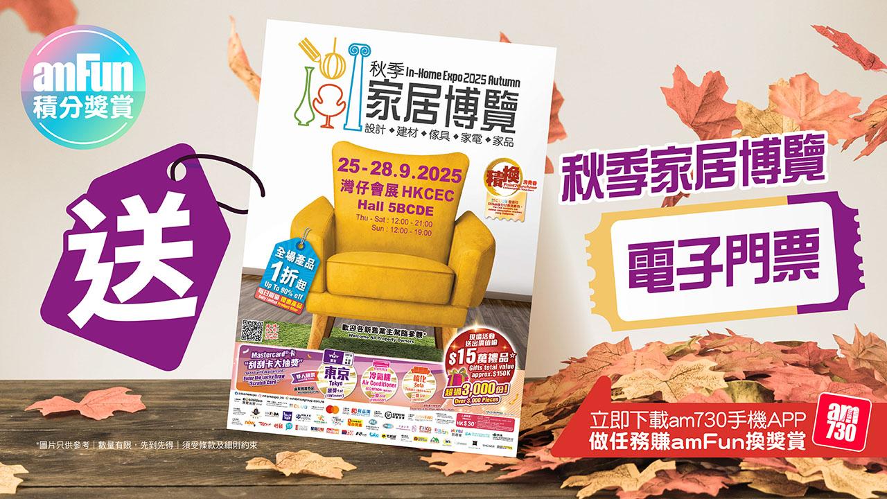 全準備搬屋裝修嘅你留意喇!今年最後一個一站式家居博覽「秋季家居博覽2025」將於2025年9月26至28日舉行,設八大展區涵蓋傢俱、室內設計、建材、環保產品、智慧家居等多個領域,合共超過570個展位及多場專業講座諮詢分享家居玄學、收納、翻新或新居入伙小貼士等主題!現場電器開倉大優惠更有每日限量優惠產品低至一折!無論新入伙、準備裝修或者想改善屋企環境嘅你,即刻Click入am730 APP「會員專區」免費領取門票啦!