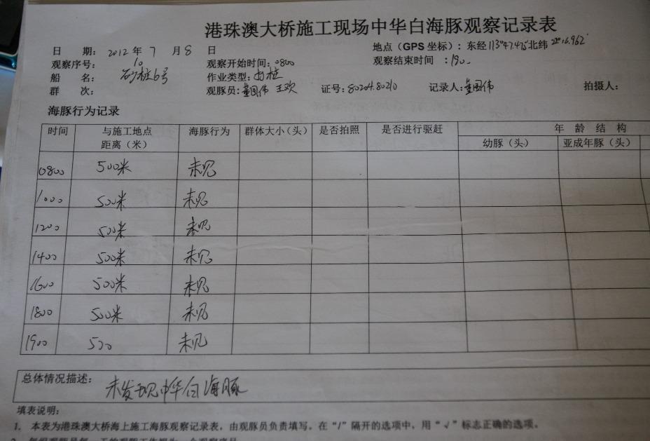 港珠澳大橋建設時的海豚觀測記錄。(圖片來源:視覺中國)