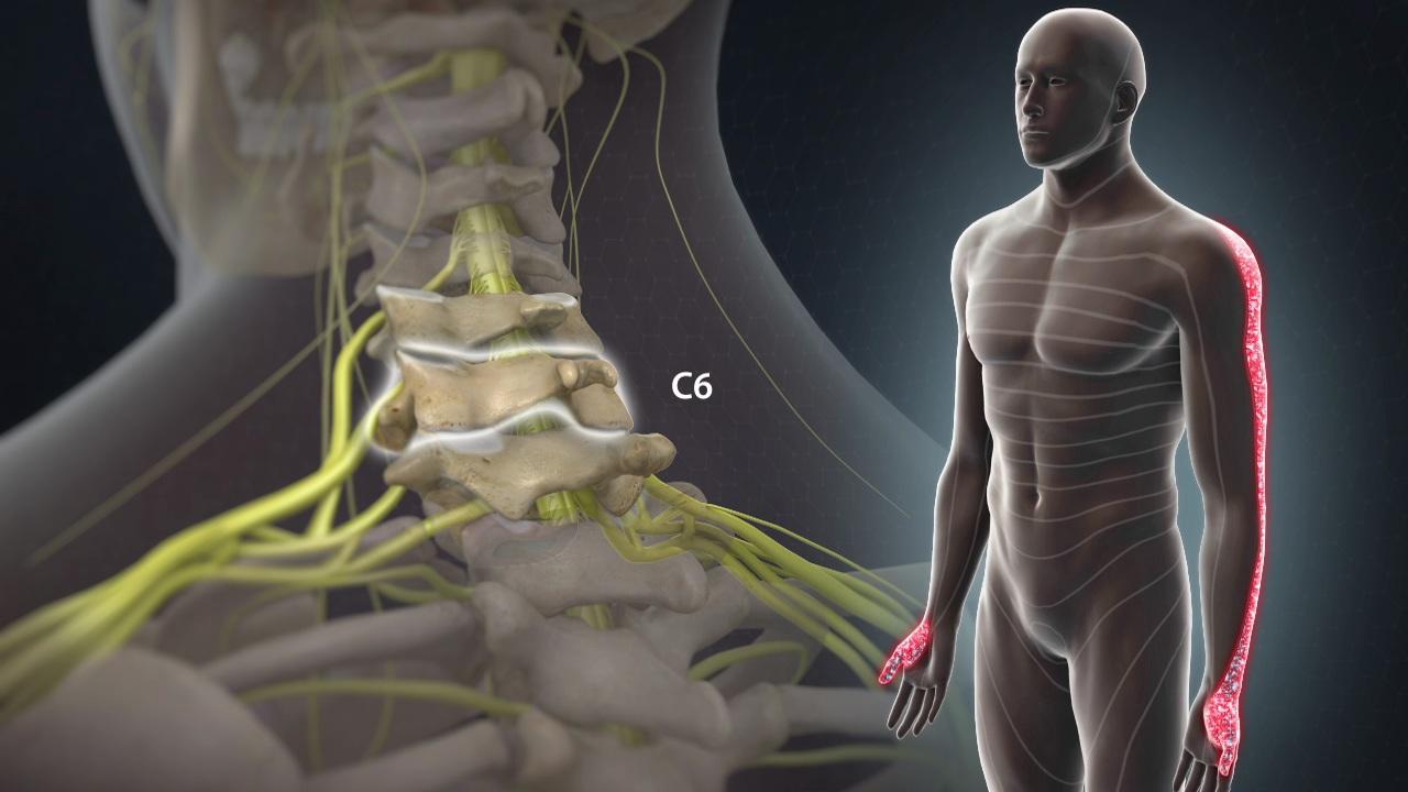 頸椎椎間盤突出(Cervical Spinal Disc Herniation)會導致頸部神經受到壓迫,產生疼痛、肌肉功能障礙等問題。王祺醫師指出,頸椎椎間盤突出最常見的症狀為頸部疼痛,並會蔓延至肩膀、手臂、手指產生麻木、刺痛感。