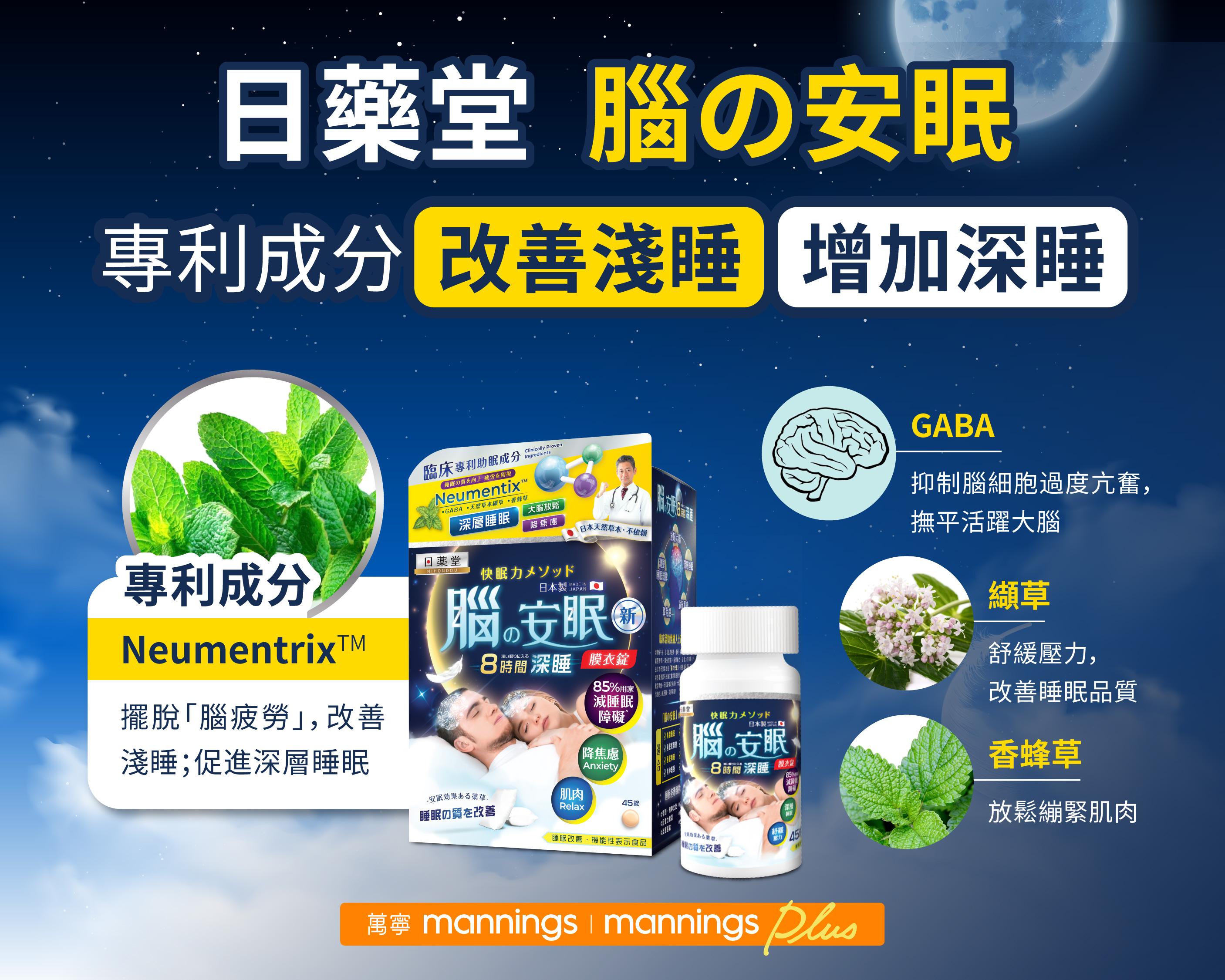 當中含有臨床專利助眠成分Neumentrix™️,有助放鬆腦部、紓緩壓力、降焦慮,擺脫「腦疲勞」。改善睡眠週期(REM Sleep),促進深層睡眠,針對淺睡、易醒等問題。