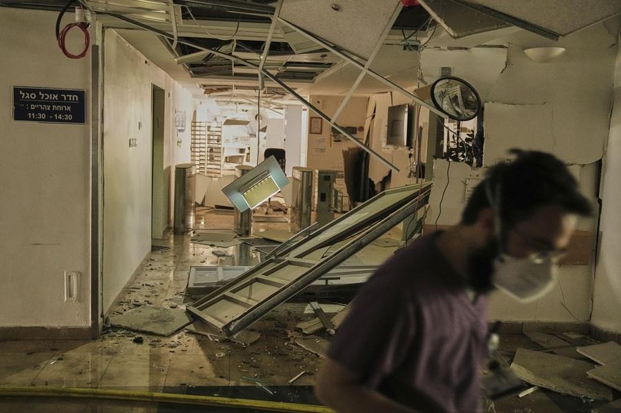 以色列南部一間醫院遭導彈擊中,院方稱近日已疏散中彈大樓的病人,無造成嚴重死傷。(美聯社)