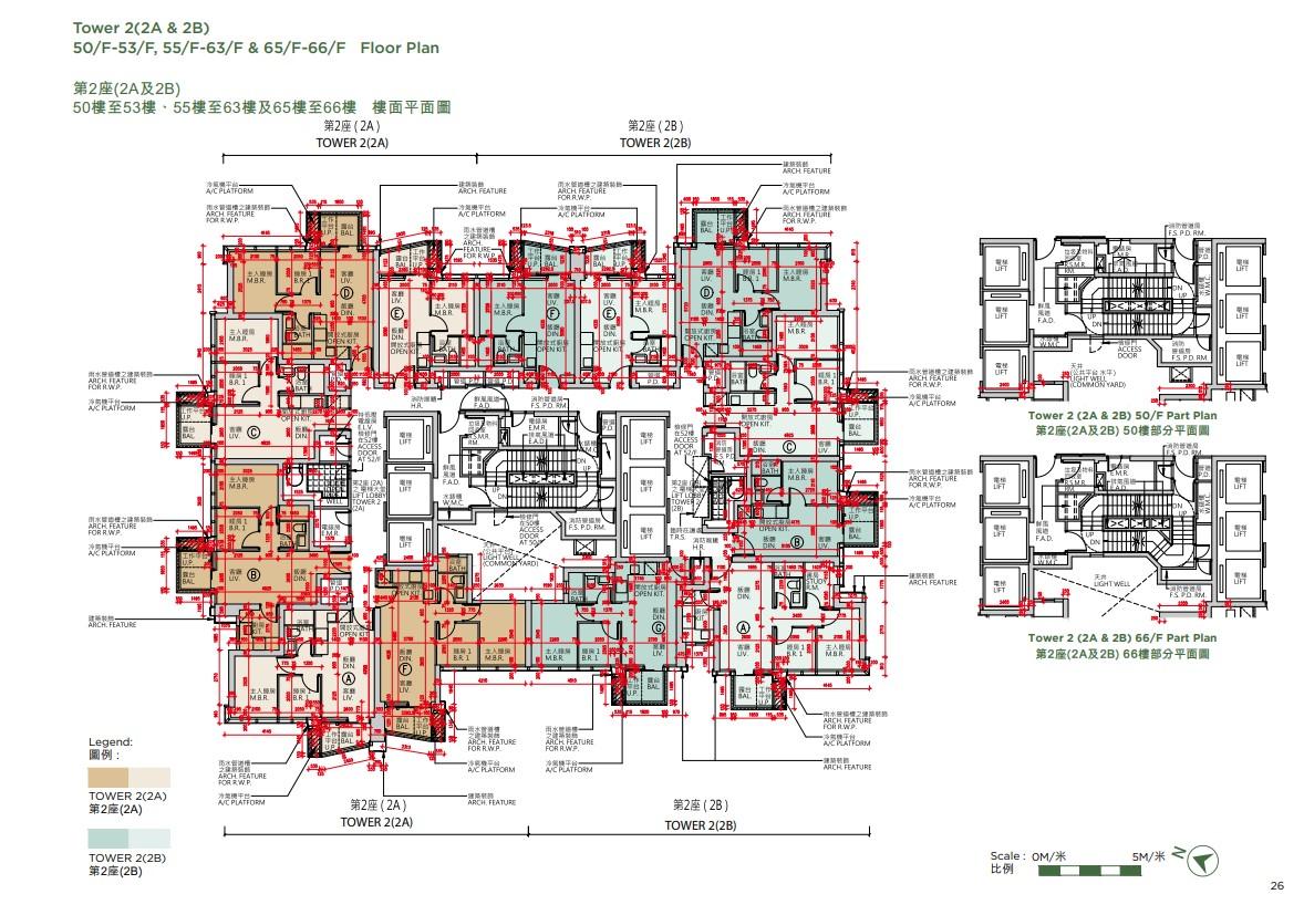 至於兩房梗廚及兩房梗廚連書房單位分別涉49及48伙,實用面積分別為496及537方呎。另設12伙連平台特色單位,實用面積由277至499方呎,平台面積介乎183至359方呎;以及13伙頂層特色單位,實用面積由315至537方呎,天台面積介乎106至437方呎。