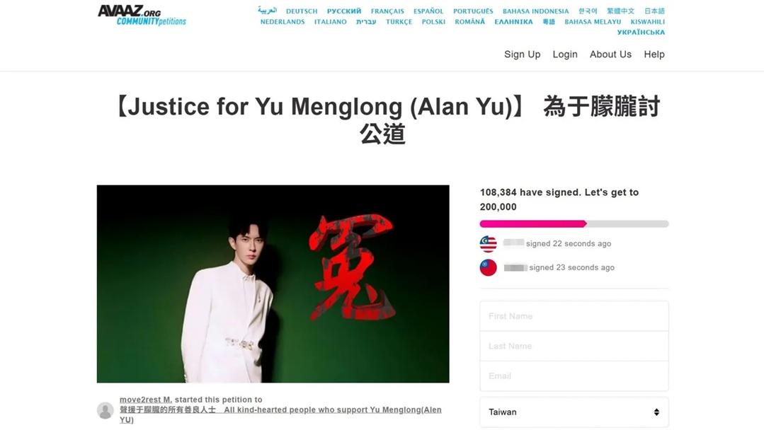37歲內地男星于朦朧在本月11日凌晨墮樓身亡,之後網絡流出他生前疑被侵犯片段,海量網民認為于朦朧之死極多疑點,要求警方深入調查。可惜北京警方在21日公布調查結果,認為死因是醉酒意外,質疑之聲更激烈。非政府組織「AVAAZ」在網上發起「為于朦朧討公道」聯署,截至今日(28日)聯署超過10萬,顯示不滿調查結果。
