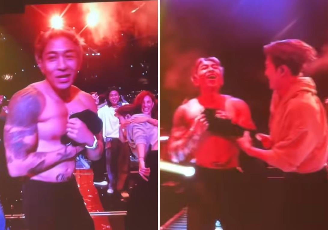 王嘉爾《MAGICMAN2世界巡迴演唱會》在澳門第2站一連3場演出爆滿,身為老友的Tyson Yoshi當然捧場兼做嘉賓。有Tyson就有胸肌睇,昨日有網民將片段在社交網分享。當中一段見到王嘉爾脫去上衣跳舞,之後再強行脫去Tyson背心,露慣肌肉的他竟露出尷尬表情。