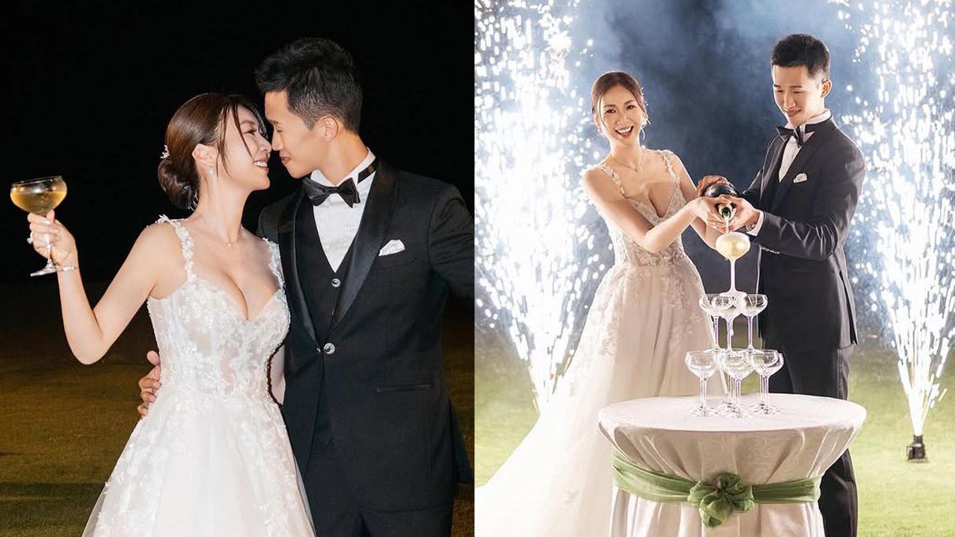 她留言道︰「多謝大家的祝福,由於男方是圈外人,我們決定低調處理。希望大家給予我們空間。謝謝大家!#weddingday #happiness #bigday #夢幻婚禮 #感恩遇上你」相中見到會場兩度放煙花,她就以一襲吊帶婚紗示人,澎湃上圍非常有睇頭,她的丈夫就只以半邊面示人。