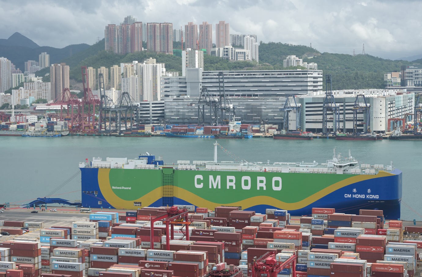全球第一艘甲醇雙燃料動力滾裝船「港榮」輪首航。政務司長陳國基出席活動致辭表示,「港榮」以香港命名,懸掛香港特區區旗,以香港作為首航地點,對正在銳意發展綠色航運的香港,形容特別有意義。