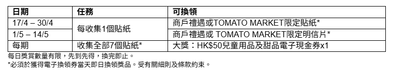 粉絲只要在由即日起至5月14日期間,免費登記成為Team Times會員,並下載時代廣場APP即可參與互動遊戲,於商場各處集齊7款隱藏超市食材貼紙及透過時代廣場APP輸入搜尋到的文字,有機會贏取HK$50兒童用品及甜品電子現金券。