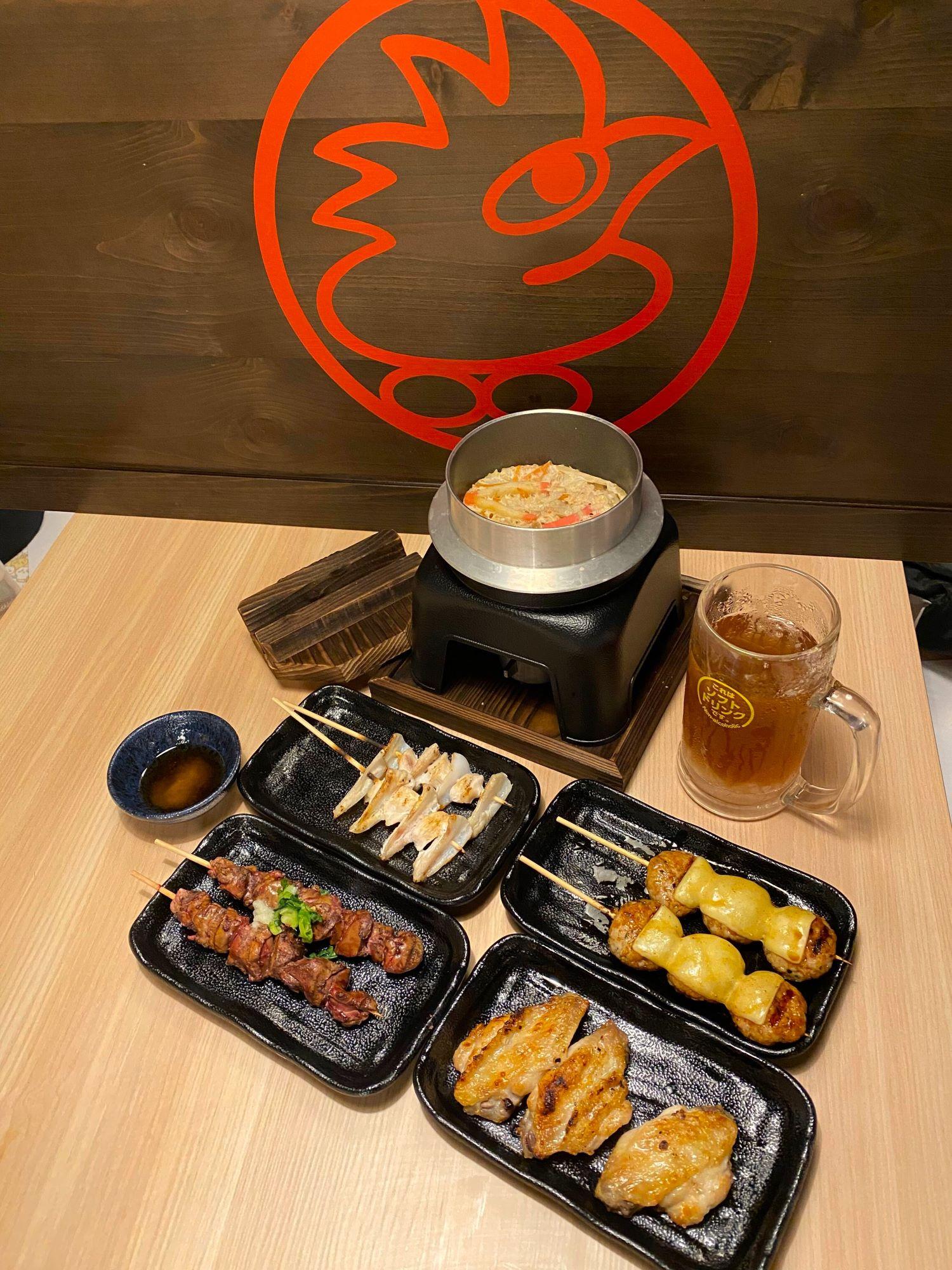 記者試了鹽燒雞中翼、秘制醬汁芝士雞肉丸、鹽燒雞胸脆骨、鹽味麻油燒雞肝及貴族雞斧飯。