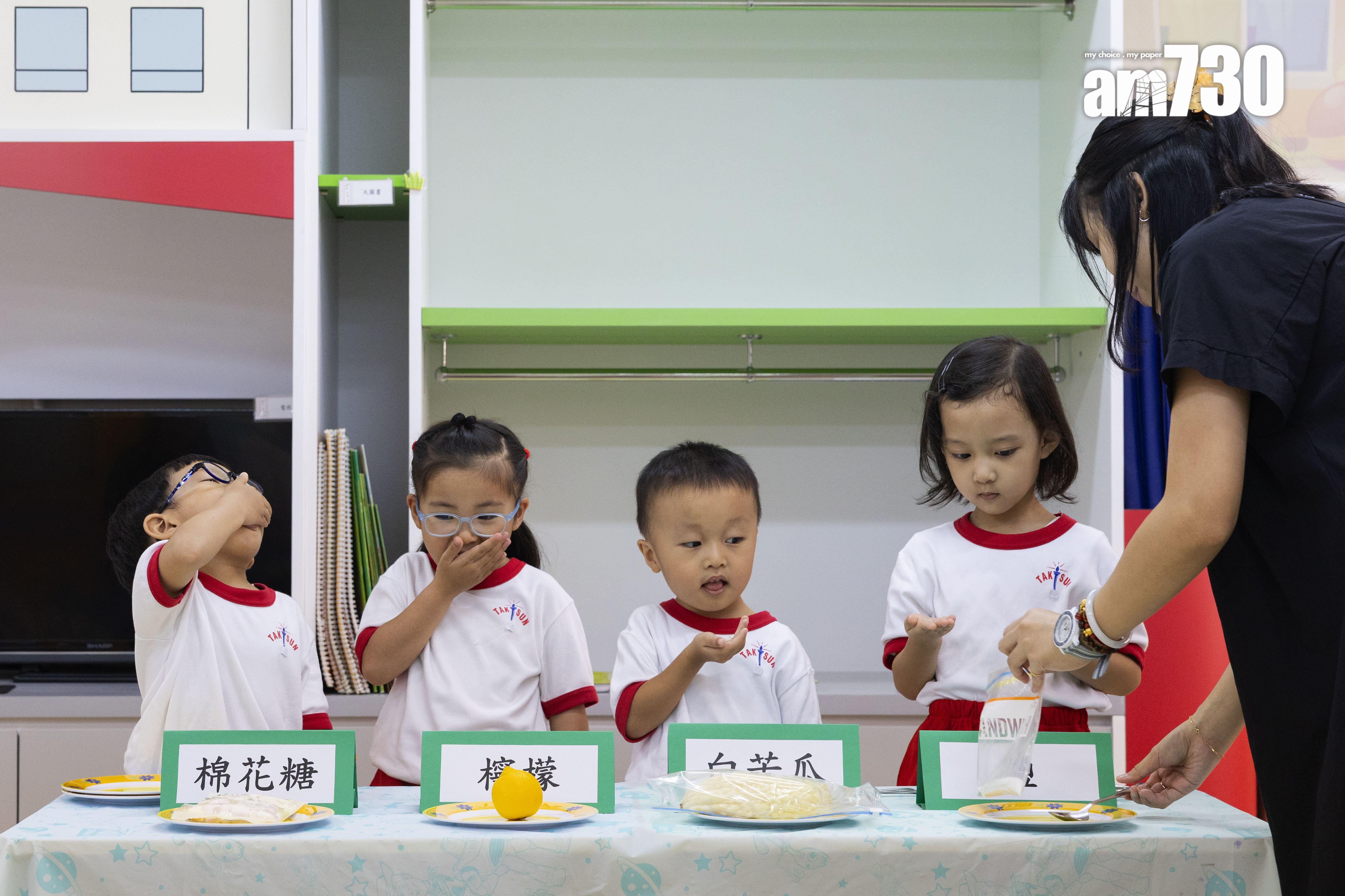 為了幫助學生認識「棉花糖」及「白苦瓜」等詞語,老師甚至準備相關食物,讓他們親身品嘗,以五感加深記憶。(蘇文傑攝)