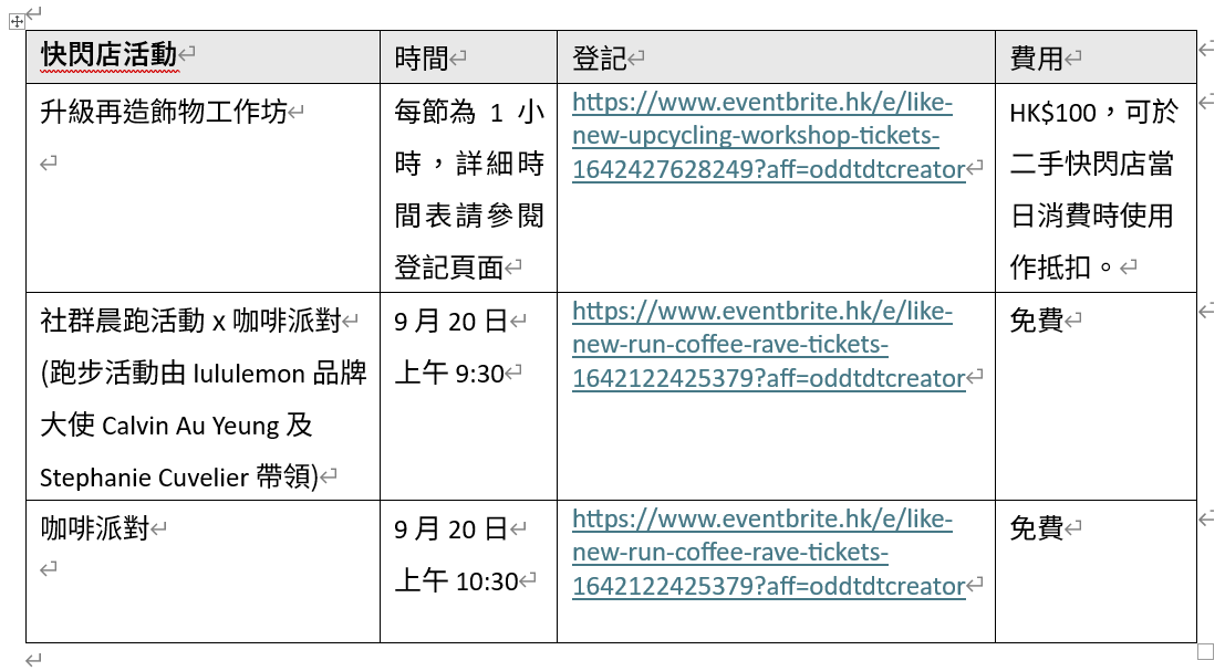 lululemon將於9月17日至21期間,在中環元創方(PMQ)開設Like New二手快閃店,發售由劉俊謙、魏浚笙(Jeffrey)、Serrini、陳健安、余德丞、內容創作者Cynthia Huang、香港游泳代表及前品牌大使鄭莉梅捐出的個人二手服飾,活動集合時尚生態循環、創意工作坊與社群互動,啟發大眾實踐更可持續發展的生活方式。