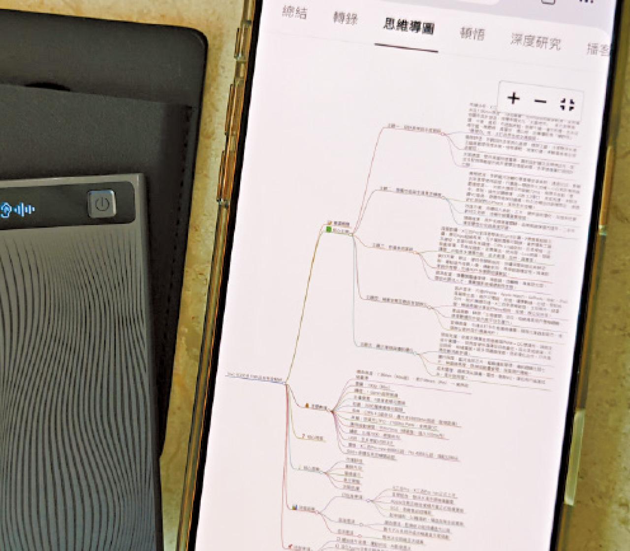 錄音後可直接在App中查看,支援120+種語種及方言即時翻譯,自動偵測是普通話,一按瞬間轉換成繁體中文。除了還原完整的錄音,更即時生成出一份如會議報告的總結,看到清晰的分段及主題,甚至產生核心問答、洞察等,數秒之間已可處理要求,性能相當強大。