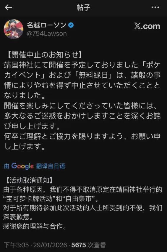 日本《精靈寶可夢》的卡牌遊戲玩家,原定1月31日在靖國神社舉辦「《精靈寶可夢》卡牌兒童體驗教室」,引發中國關注,有傳活動已經被取消。《環球時報》炮轟,此舉是「對歷史真相的公然褻瀆」,而內地網民紛紛留言稱抵制,獲社評「予以點讚」。
