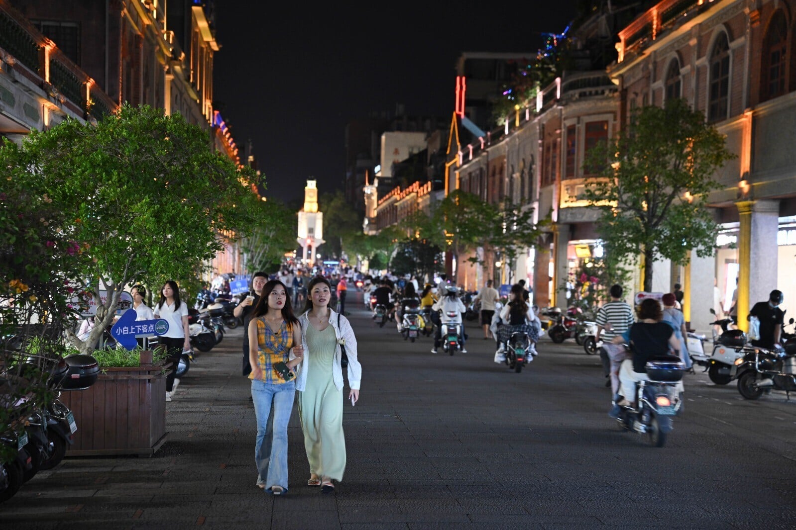 泉州古城鱗次櫛比的紅磚,蔚為奇觀。為保育泉州古城及紓緩舊城區的交通壓力,不少地方禁止私家車進入,只能以電動電單車或單車代步。(新華社) 紅牆黛瓦建構而成的浪漫古鎮──泉州。(新華社) 2025年泉州古城晚上人氣高企。(新華社)
