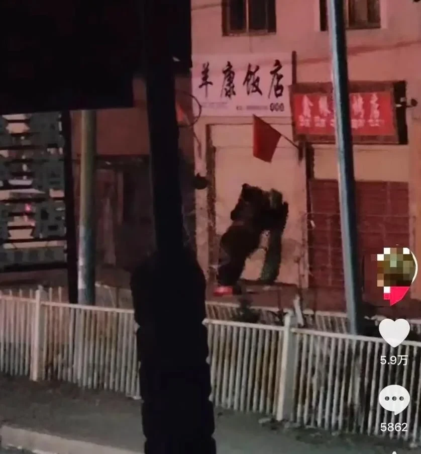 農曆新年時,一段「黑熊夜晚闖進餐廳」的影片在網上引發關注。影片顯示,一頭身高接近成年人的黑熊,在西藏那曲市一間餐廳外,用力拍打已關閉的卷簾,儘管店鋪設有鐵絲網圍擋,但仍被黑熊破壞。隨後,另一段影片記錄了黑熊將鐵絲網扯爛,推開卷簾進入店內的過程。