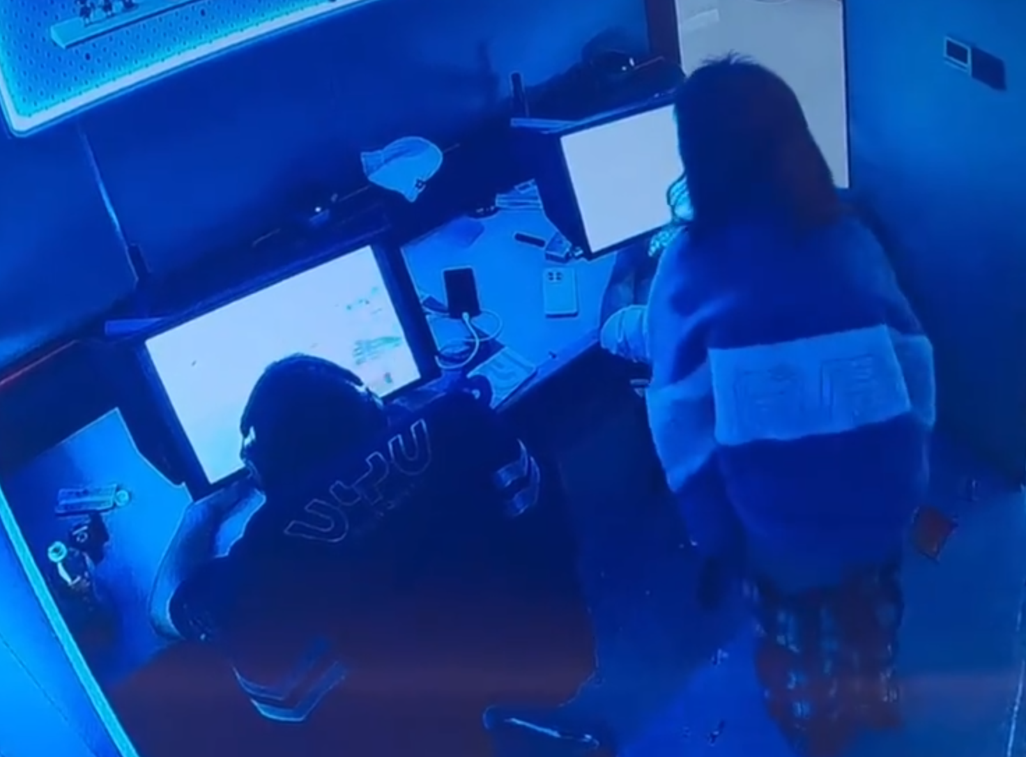 湖南一名男子與朋友前網吧打機期間,被一名陌生女子闖入騷擾猥褻。(微博影片)