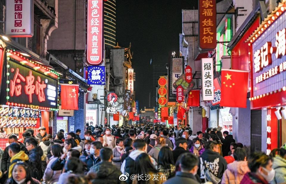 從香港搭高鐵出發去長沙,只需要3小時10分鐘。圖為熱鬧的長沙街頭。(圖片來源:長沙發布@微博)