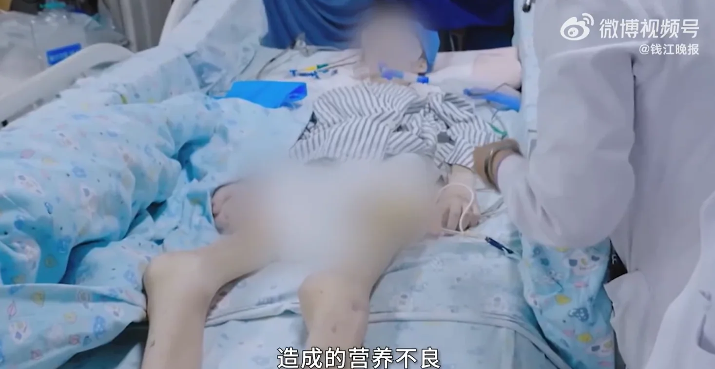 女孩送醫時皮下脂肪完全消失,體重僅剩24.8公斤。(圖/翻攝微博@錢江晚報)