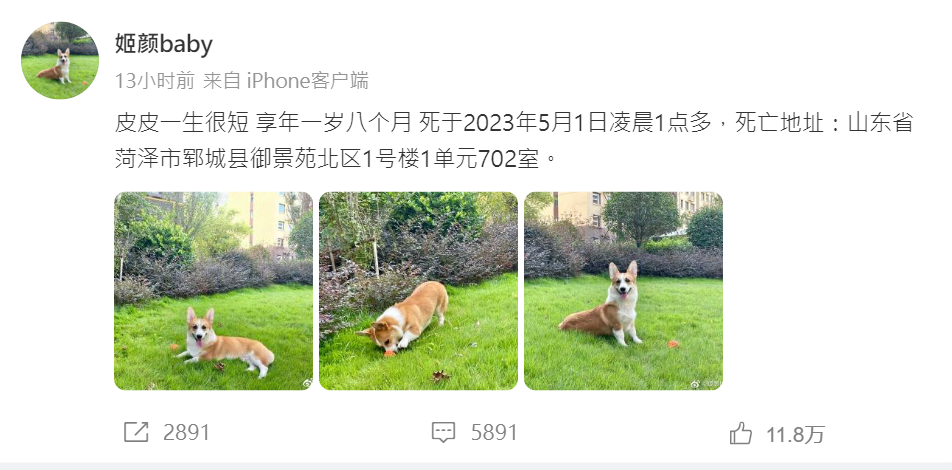 家中哥基被丈夫十幾刀砍死,讓女子十分痛心。(圖/翻攝微博@姬顏baby)