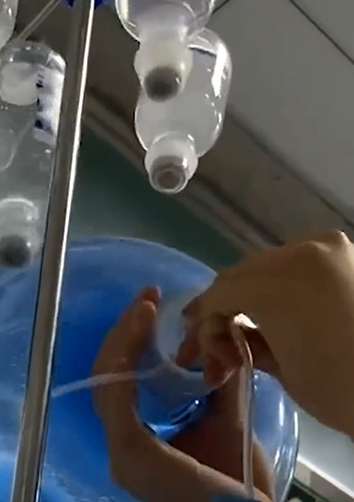 大陸一名女病患在診所「吊鹽水」時被「轉插」礦泉水桶。