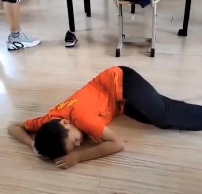 男童癱軟在地上,臉色發白。(圖/翻攝微博影片).