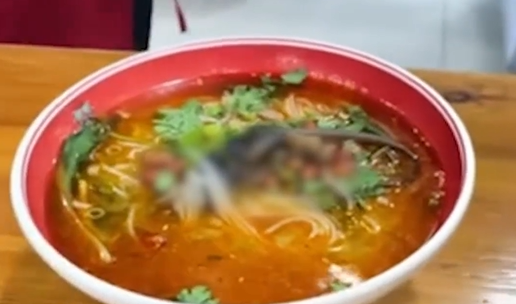 從顧客拍下的影片可以看到,剛端上桌的湯麵看起來相當好吃,不過裏頭卻躺了隻一動也不動的死老鼠,麵店老闆解釋,服務生將麵端上桌時,碗裏是沒有老鼠的,是後來客人短暫離開去拿飲料時,老鼠從天花板上掉進了碗裏。