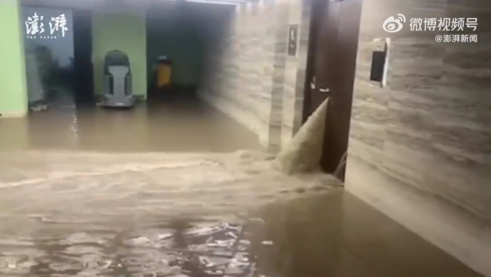 影片畫面顯示,滾滾黃泥水從一處縫隙不斷灌入地下停車場,停車場內當時停有數輛汽車。而闖出大禍的,就是居住在該社區鄰近河道的某位住戶。經查該住戶涉嫌私自開挖地下室,並破壞建築物地下室外牆,才導致地下水混合河水滲漏。事發後,當地公安、消防、城管及社區等多個部門趕至現場處置並責令停工。目前塌陷的缺口已用混凝土澆築防漏,並進行河堤加固工程。當局已成立聯合調查組全面調查,追究涉事者責任。