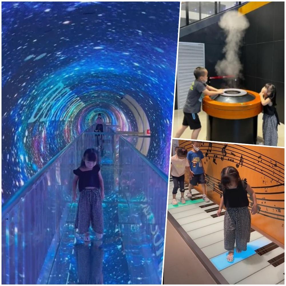 在龍崗科技館不乏震撼的視覺元素體驗,有虛擬的宇宙場景、模擬雲、腳踏鋼琴裝置等,都令小朋友耳目一新。 (圖片來源:獵筆小兮@小紅書)