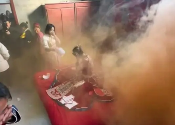 新娘房內煙霧瀰漫。(圖/翻攝微博)