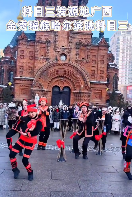 少數民族哈爾濱大街表演火爆舞蹈《科目三》