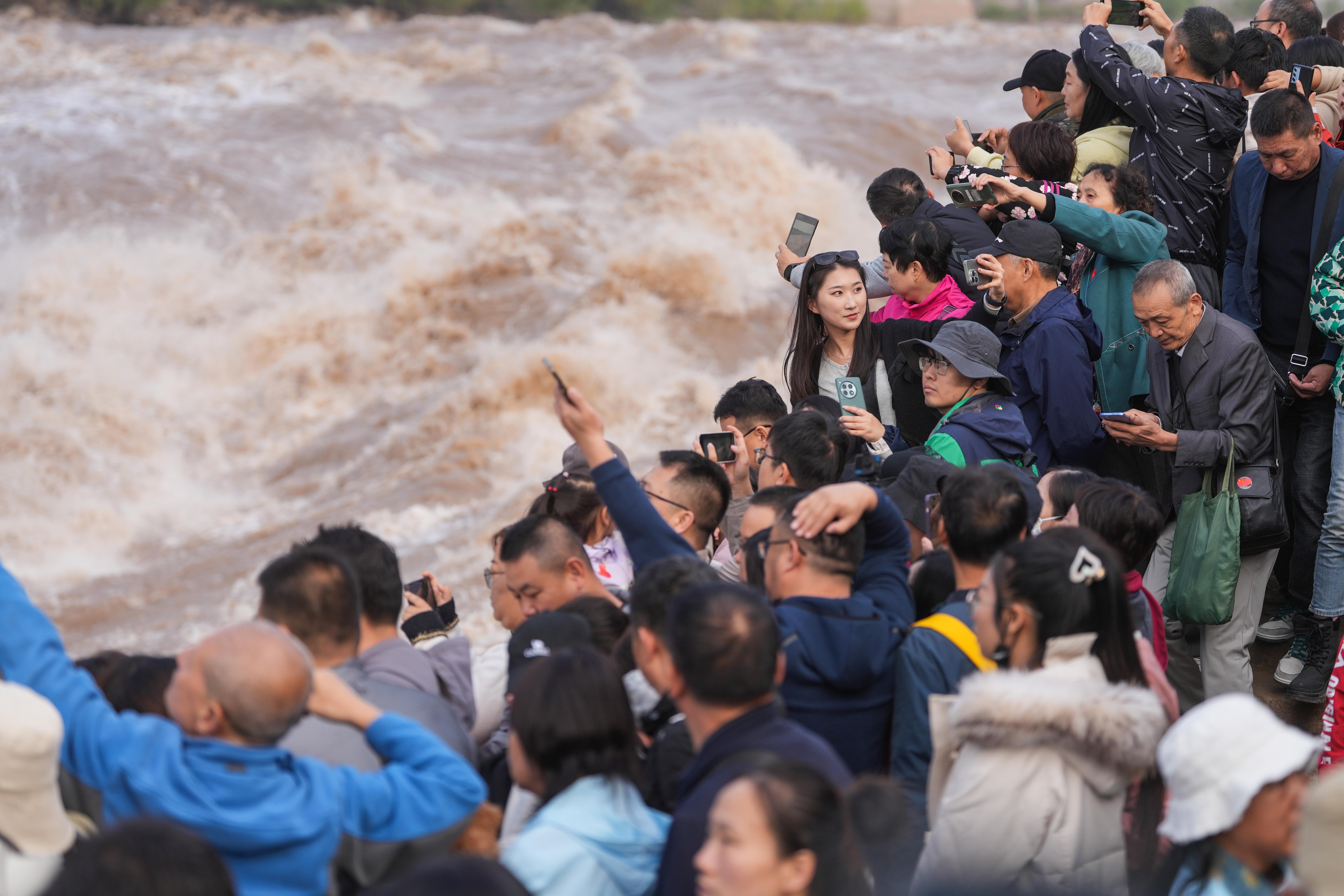 十一假期間各地景區人山人海,亂象不斷。圖為黃河壺口瀑布。(圖/新華社)