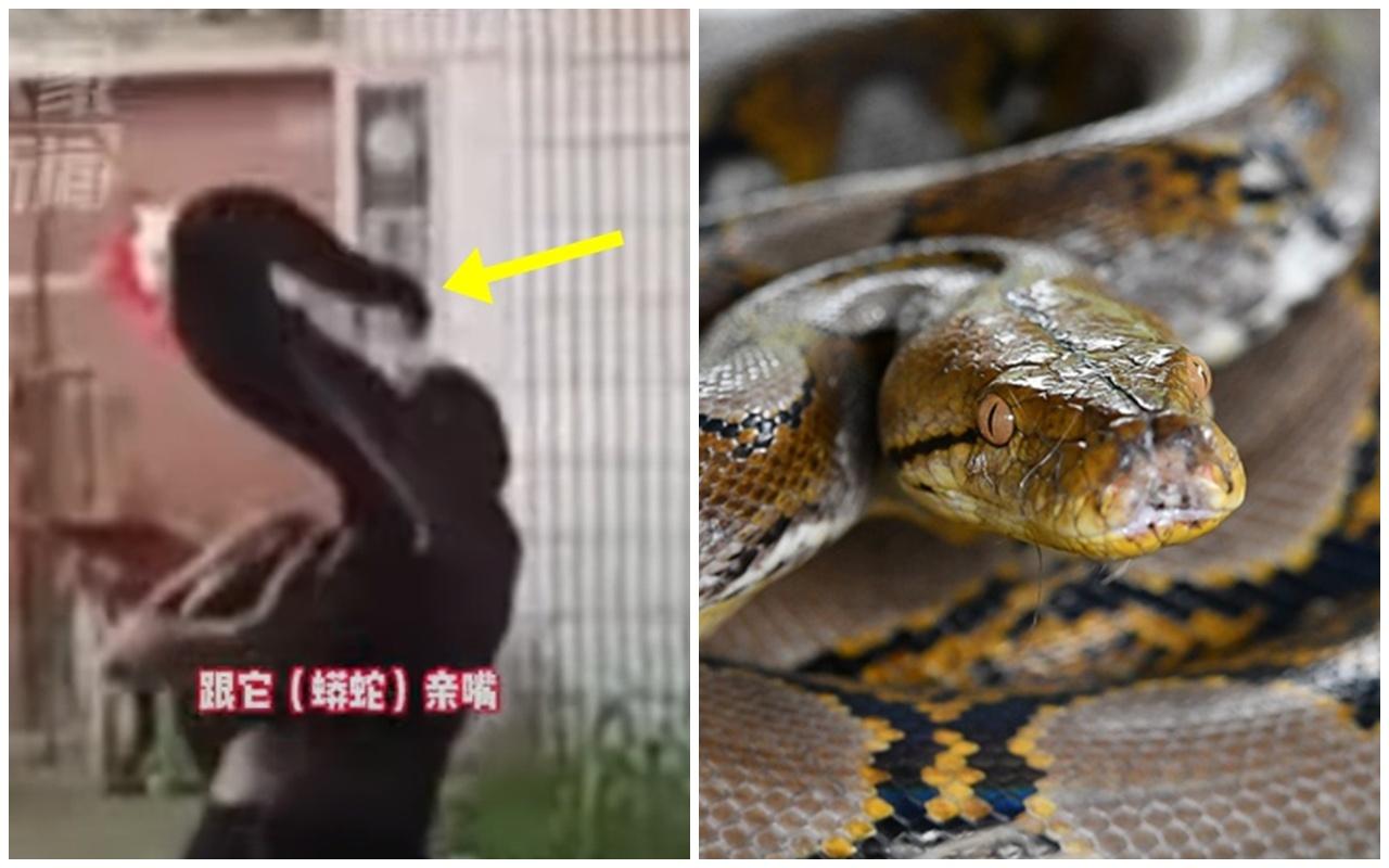 女子婚禮表演蛇吻慘被巨蠎咬唇5分鐘,網民傻眼:喻意永不分離?(微博)