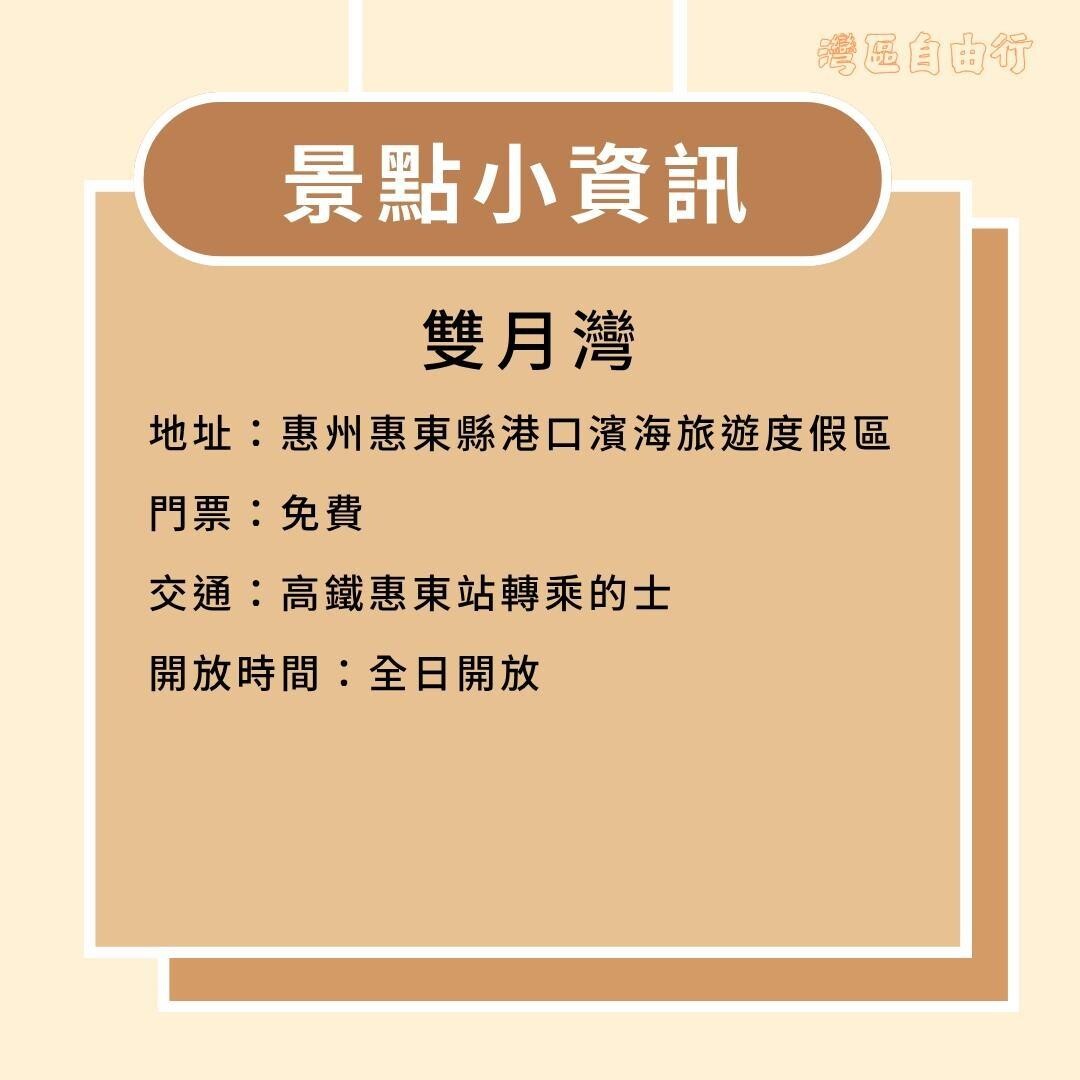 距離香港約3.5小時車程的惠州雙月灣,可能也是不錯陽光與海灘的選擇。雙月灣之名,源於其「雙灣雙海」奇觀。整個海灣從高空往下看,就像是兩輪新月。