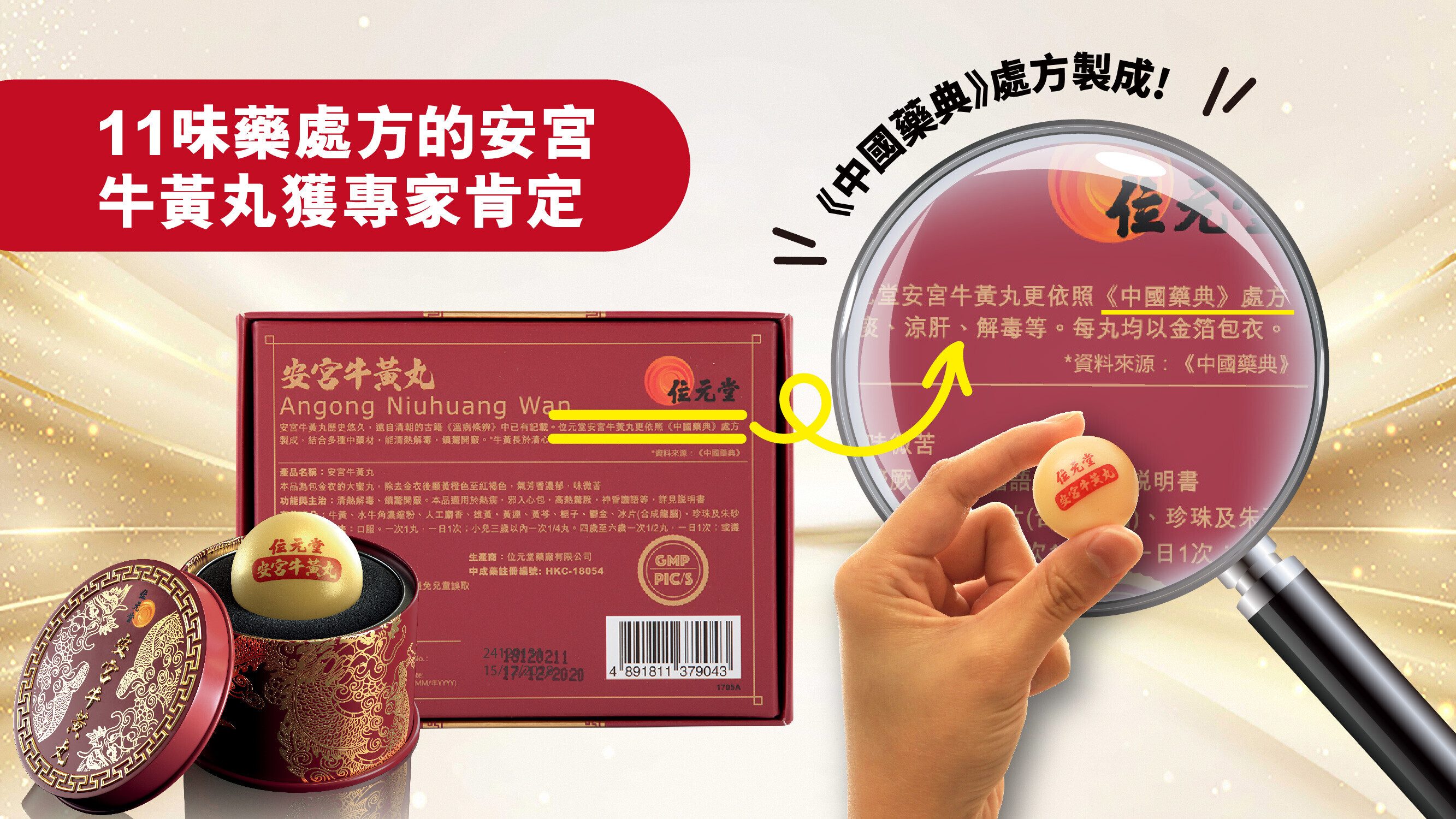 香港著名大學醫學院一項最新研究發現,藥典處方「安宮牛黃丸」當中含有的活性成分,可以抑制大鼠腦中招昏迷後腦內產生熱症分子,將黃金治療的4.5小時,延長半小時至5小時6。眾多品牌中,位元堂忠於古方正藥以深厚根基傳承古方,恪守《中國藥典》處方煉製,質量及效果有保證。