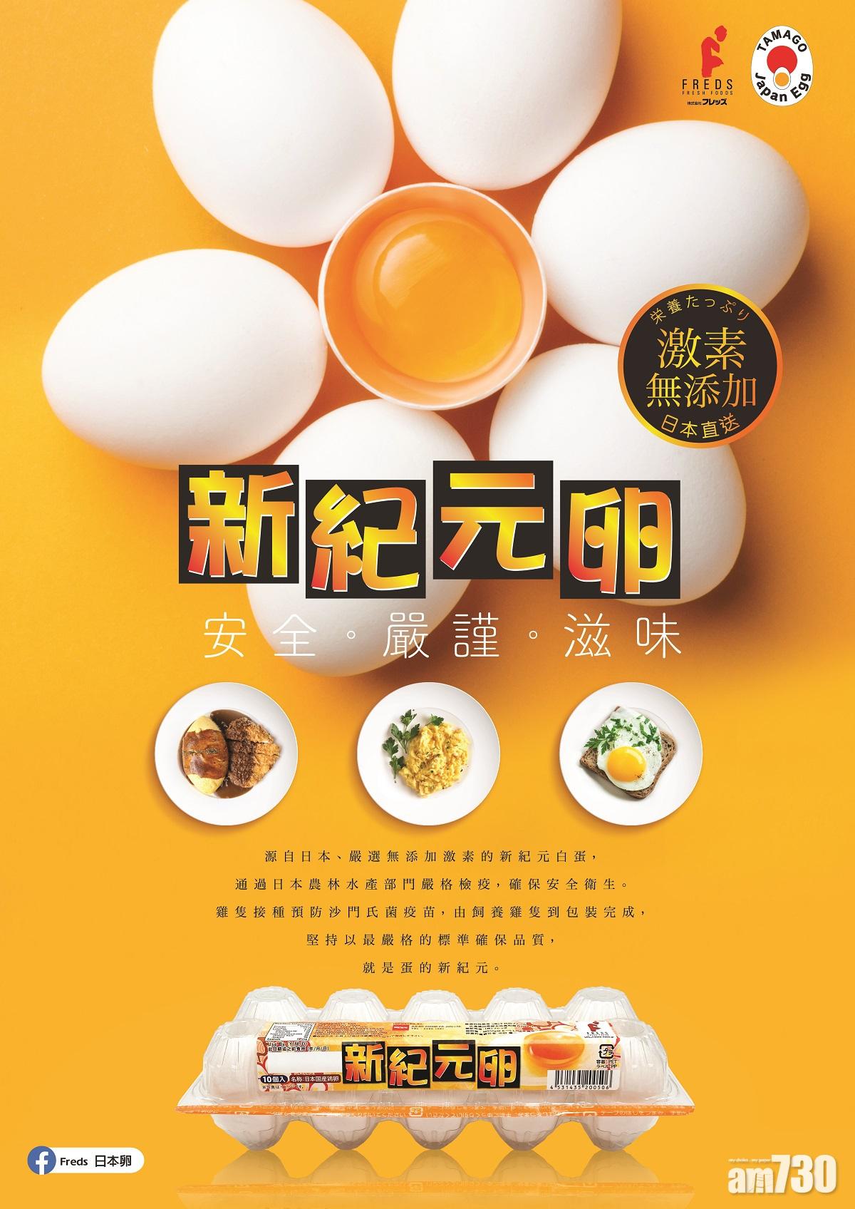 日本「新紀元卵」於香港銷售逾10年,由採卵至運送每一個過程都通過日本農林水產部門嚴格檢疫,確保安全衛生可靠。除此之外,「新紀元卵」雞隻接種了預防沙門氏菌疫苗,有助減少雞隻受到沙門氏菌感染。每批「新紀元卵」均由日本新鮮直送,必須得到日本農林水產省發出的輸出檢疫証明書才能出口到香港,絕對安全可靠。