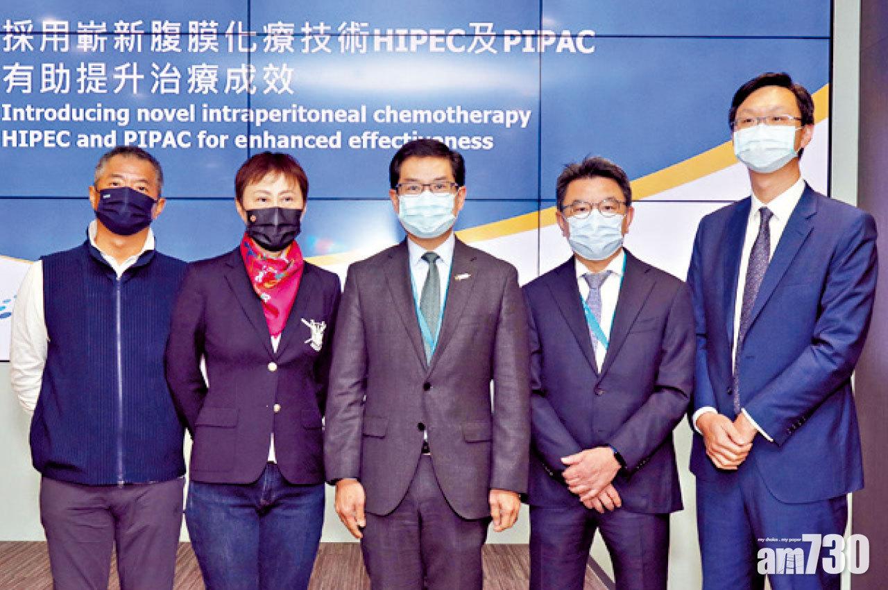 腹膜癌分為原發性腹膜原位癌,以及擴散性腹膜癌。擴散性腹膜癌常見轉移自胰臟癌、胃癌、結直腸和卵巢癌等。港怡醫院去年4月啟用腹膜腫瘤治療中心,更引入腹腔溫熱灌注化療(HIPEC)及腹腔加壓霧化化療(PIPAC),為患者提供更適切治療。