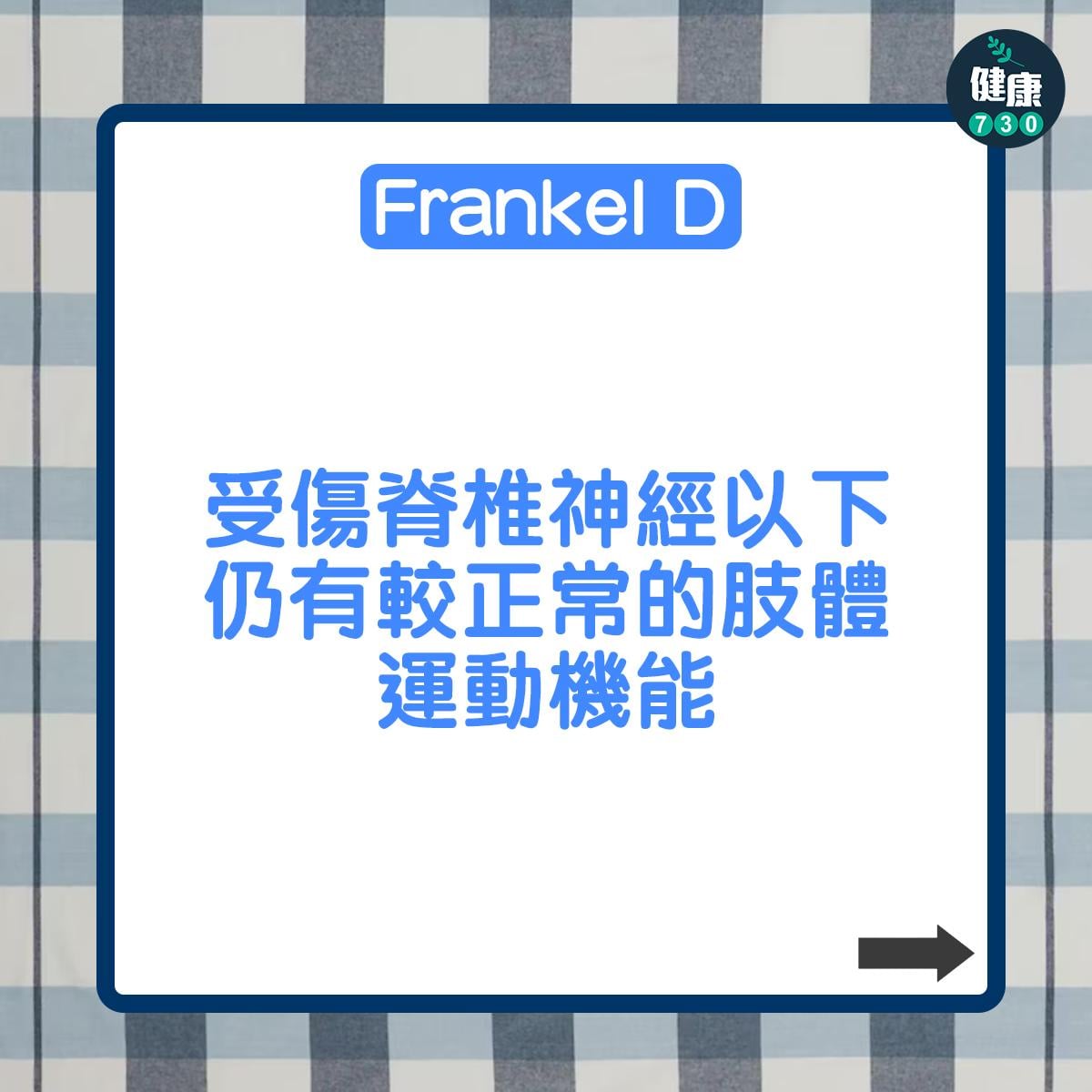 Frankel D:受傷脊椎神經以下仍有較正常的肢體運動機能;