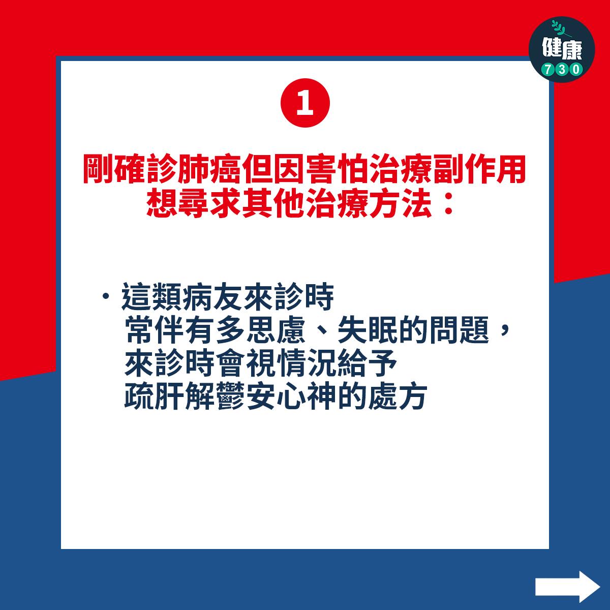 常見的癌症病人 可分為4類 剛確診肺癌但因害怕治療副作用想尋求其他治療方法: 剛確診肺癌正在等待治療: 已接受一段時間或完成治療,腫瘤治療穩定者: 歷經各種治療後反應不佳,想再嘗試其他方法繼續努力的病友: