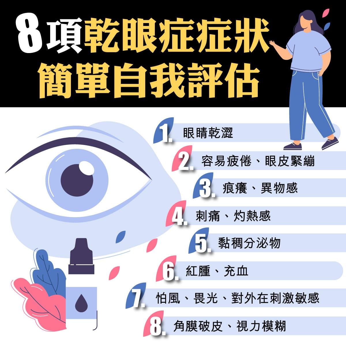 而常見高危人士包括︰長時間配戴隱形眼鏡人士、長時間注視電子螢幕人士、長期服用藥物如血管收縮劑及抗抑鬱藥、長時間處於乾燥環境如有冷氣或暖氣的室內地方、以及在陽光下暴曬、免疫系統疾病患者如關節炎、糖尿病、 甲狀腺疾病等,以及約45歲以上的更年期婦女。