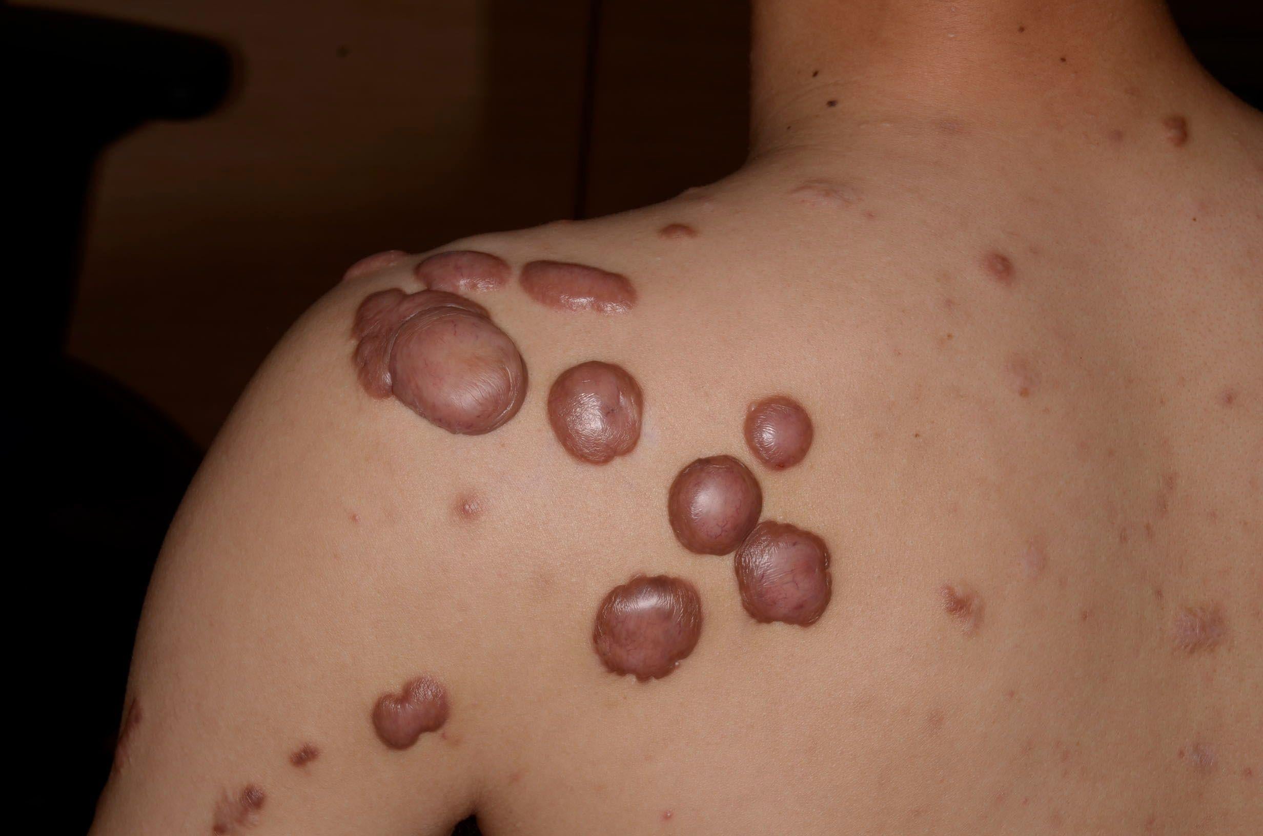 蟹足腫的常見部位包括耳朵、手臂、肩背部及胸口。