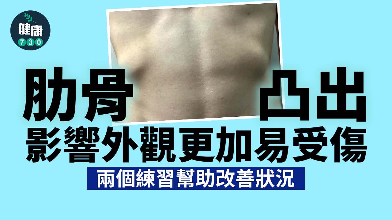 肋骨凸出(flared ribs)雖然不常聽,但實質上也很常見,即最底的肋骨會凸出來,而左右兩邊多數會不平衡。由於它不會帶來不適和痛楚,令大家以為僅屬外觀問題。除了先天原因外,姿勢不良、呼吸方法不當都有可能形成肋骨凸出,幸而也有方法可以改善。