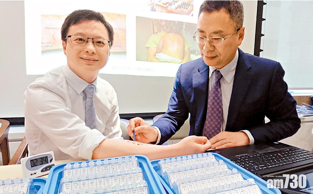 莊俊賢(左)及何學工(右)即席示範皮膚點刺測試。