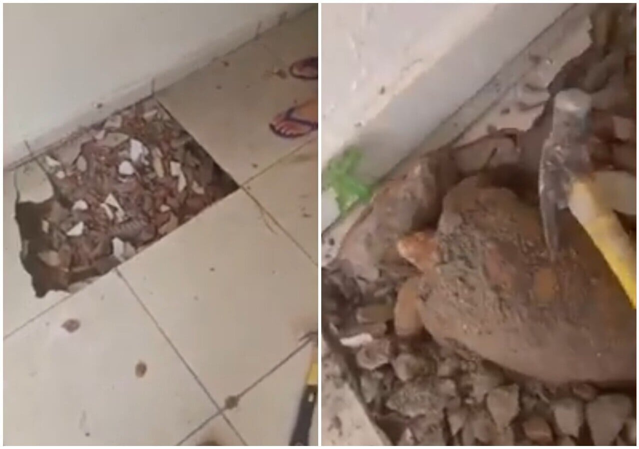 綜合報道,事件發生於去年2月在巴西伊塔卡賈市(Itacajá)一個家庭,屋主的孫女Luiza Regina表示,因為漏水問題才請工人鐅開地板,詎料地磚下方竟藏著一隻陸龜,她說,據知這地板封死至今已10年,推測這隻陸龜可能是之前裝修時,不慎掉入地基並被活埋。由於長期受困於狹小空間,陸龜獲救時龜殼已明顯因擠壓而變形,且由於長年未接觸陽光,對光線極度敏感。