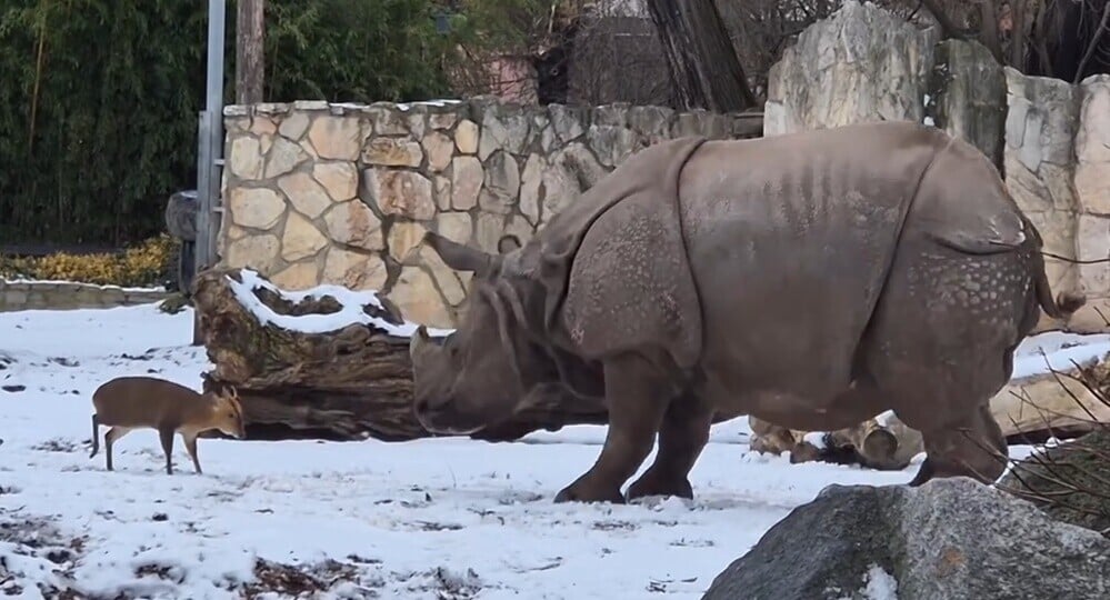 波蘭當地動物園近日分享一段雄性黃麖單挑大犀牛的影片。影片中可看到,一頭身形嬌小的22公斤黃麖或稱山羌,竟然勇敢挑戰一頭體重1,700公斤的犀牛,兩者體形相距130倍之遠,看得人心驚肉跳,令影片在網路上爆紅,獲得破百萬點閱。原來牠們原本是朋友,動物園就為大家解釋牠們的「反目」因由。