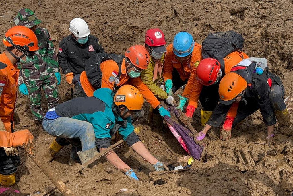 由於地形不穩定且持續降雨,救援人員在1月24日無法部署重型機械進行搜救,只能徒手挖掘。印尼國家救援機構表示,搜救隊伍在軍方、警方及義工協助下,正使用無人機和搜索犬搜索生還者。