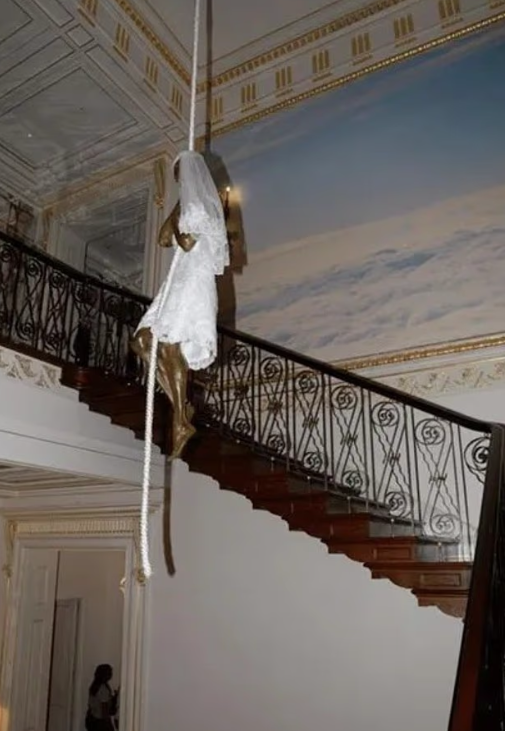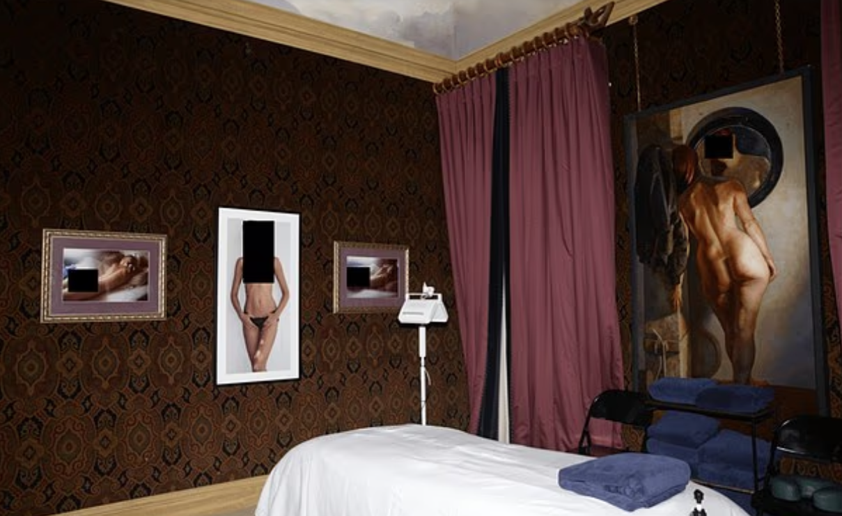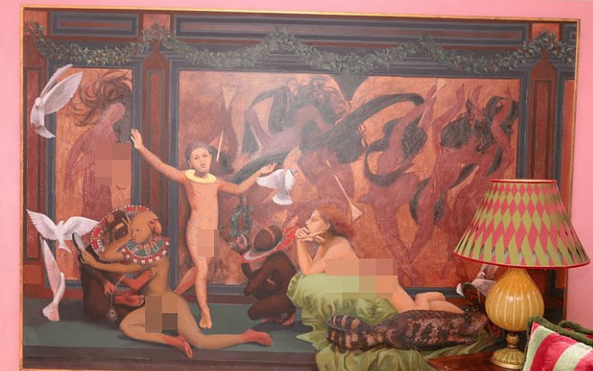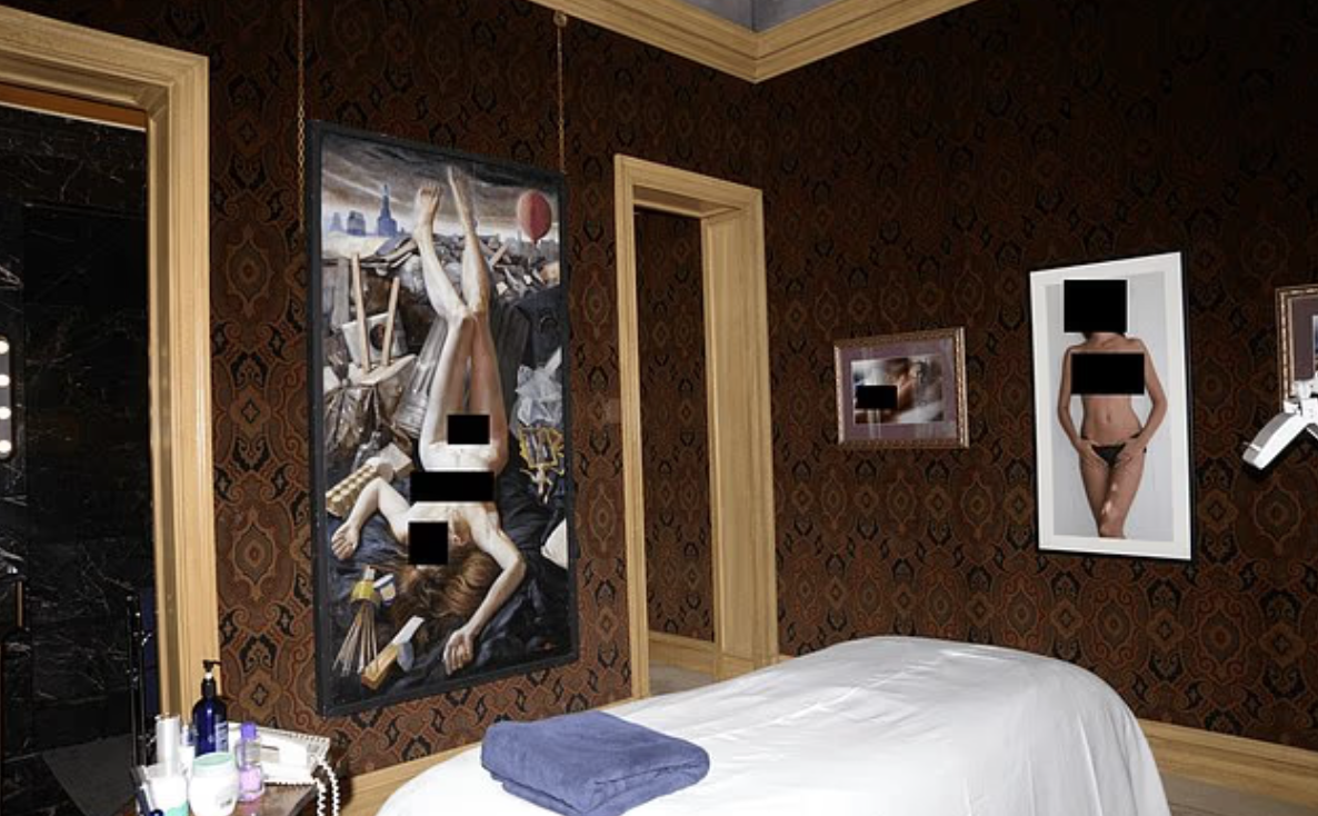 另有照片可見愛潑斯坦紐約豪宅內有兒童裸體畫作、女童雕像群,以及陳列情色藝術品的按摩室,宅內多處浴室掛有年幼男童的黑白攝影照、螺旋樓梯上方懸吊穿著新娘禮服的女性雕像;另有照片拍下一名女子的腳、胸口及背部上寫有小說《蘿莉塔》的句子。