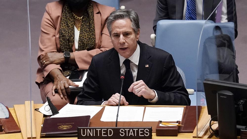 聯合國安理會開會討論俄羅斯與烏克蘭邊境局勢。美國國務卿布林肯(Antony Blinken)在會上指出,俄羅斯計劃編造可以入侵烏克蘭的藉口,要求俄羅斯宣布不會入侵烏克蘭,然後從邊境撤回軍隊、坦克及軍機,改為派出外交官進行談判。他說,美國無意發動戰爭,並質疑俄羅斯聲稱由烏克蘭邊境撤軍的說法,指情報清楚顯示俄軍,包括地面部隊、軍機及軍艦準備在未來數日攻擊烏克蘭。