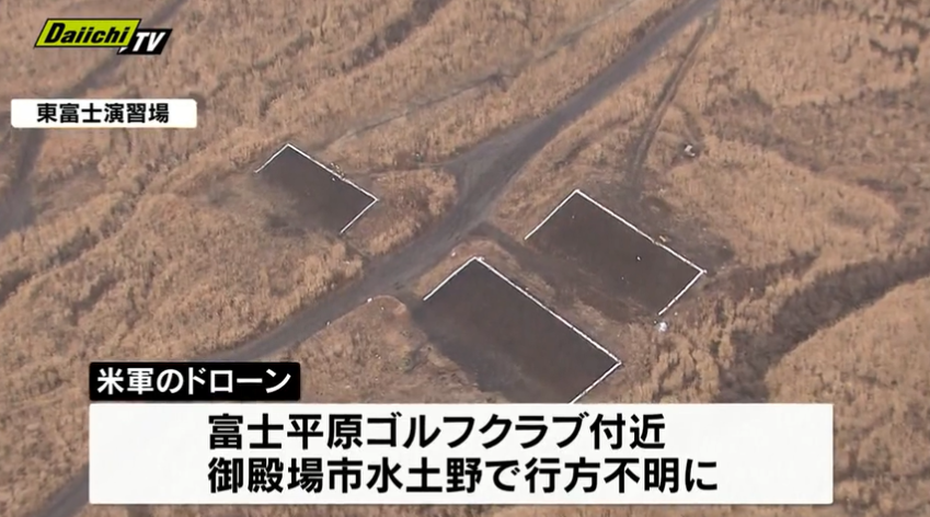 據防衛省南關東防衛局的消息,12月7日上午10時左右,一架長約1.4公尺,寬約2.8公尺,重約7公斤的無人機,在御殿場市進行飛行訓練時,於富士平原高爾夫球場上空突失蹤。防衛省在同日晚間收到美軍通知,日方在無人機失聯地點附近持續搜索,並未收到有建築物受損或民眾受傷的消息。