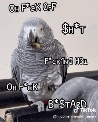 英國林肯郡野生動物公園(Lincolnshire Wildlife Park)早前因為飼養的8隻灰鸚鵡因為染上「講粗口」惡習,決定將牠們跟另外92隻灰鸚鵡生活,企圖同化牠們改變講粗口惡習,事隔一個月,院方公布最新進展令人爆笑。