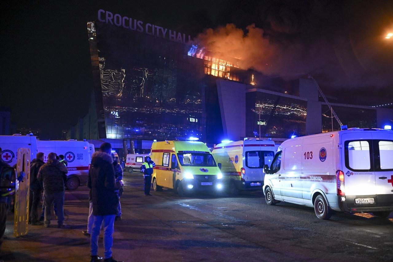 俄羅斯番紅花城市大廳(Crocus City Hall)22日晚間遭到恐怖襲擊,官方宣布至少143人罹難。伊斯蘭國(IS)宣稱犯案,稍早更公開4名槍手的照片,以及槍手作案時拍下的影片畫面。