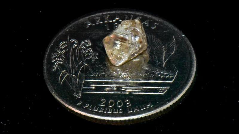 綜合報道,來自紐約巿的31歲女子Micherre Fox是近期的研究所畢業生,為慶祝畢業,同時亦為即將到來的婚禮節省訂婚戒的開支,她決定親自動手挖掘鑽石。Micherre說,原本準備前往世界各地尋找鑽石,後來發現這座位於美國的公園是全球唯一開放給民眾自行挖掘並保留寶石的場所,便毅然啟程。Micherre在上月8日抵達園區後,每日親手挖掘泥土、仔細搜尋閃光物,持續了3個星期。直至上月29日上午11時,亦是她這趟旅程的最後一天。當時她看到地面有物件閃閃發亮,原以為是露水覆蓋的蜘蛛網,但在用靴子輕輕一碰後,才發現竟是一粒鑽石。她立刻將它送往「鑽石探索中心」(Diamond Discovery Center)鑑定,經確認為無色白鑽,重量超過2卡,大小近似人類犬齒,並擁有圓滑外型與金屬光澤,符合園區典型鑽石特徵。